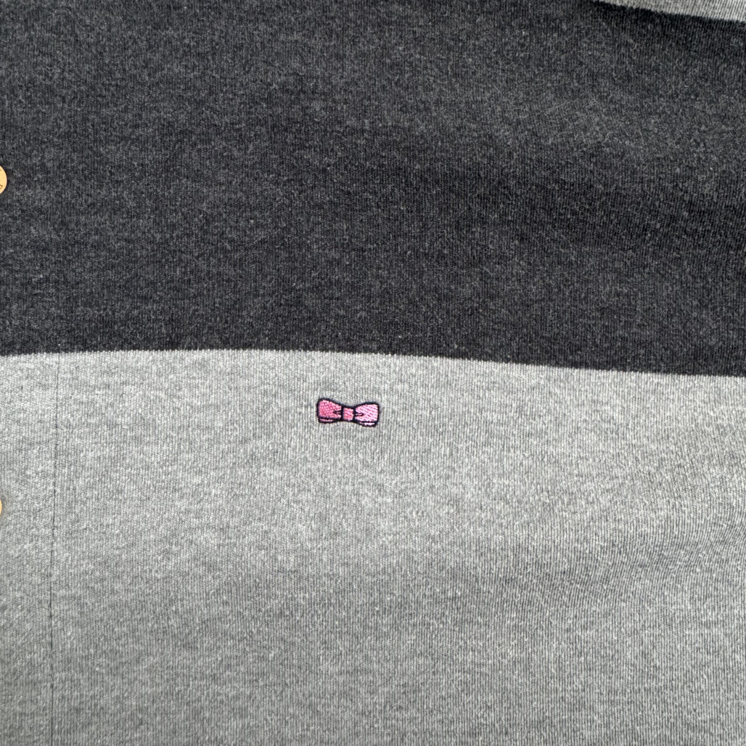 Elle est dotée d’un col classique, de boutons dorés typiques de la marque et du célèbre nœud papillon rose brodé sur la poitrine, signature emblématique Eden Park.