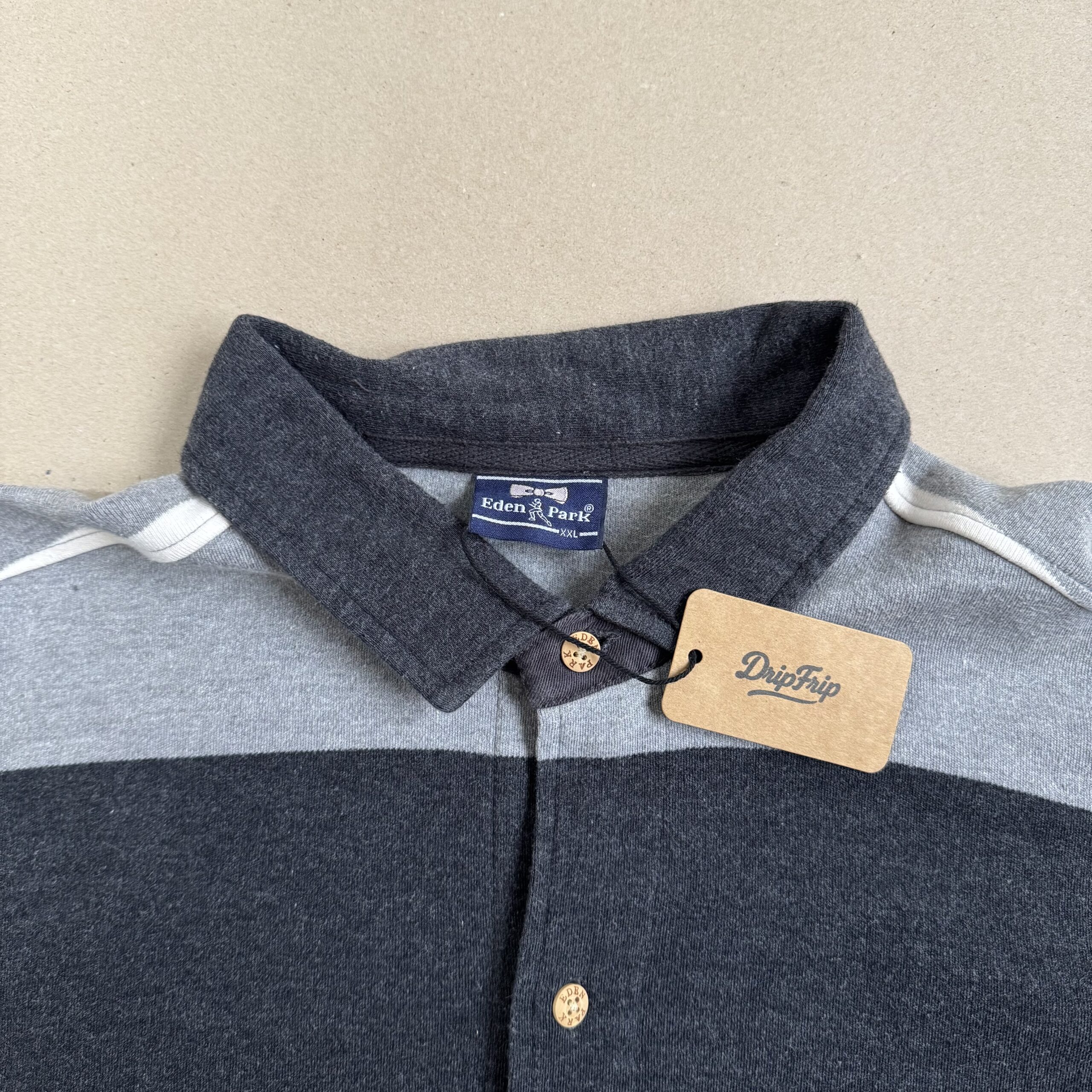 Chemise Eden Park Rayée à manches longues présentant de larges bandes horizontales en tons gris, blanc et noir pour un look élégant mais moderne.