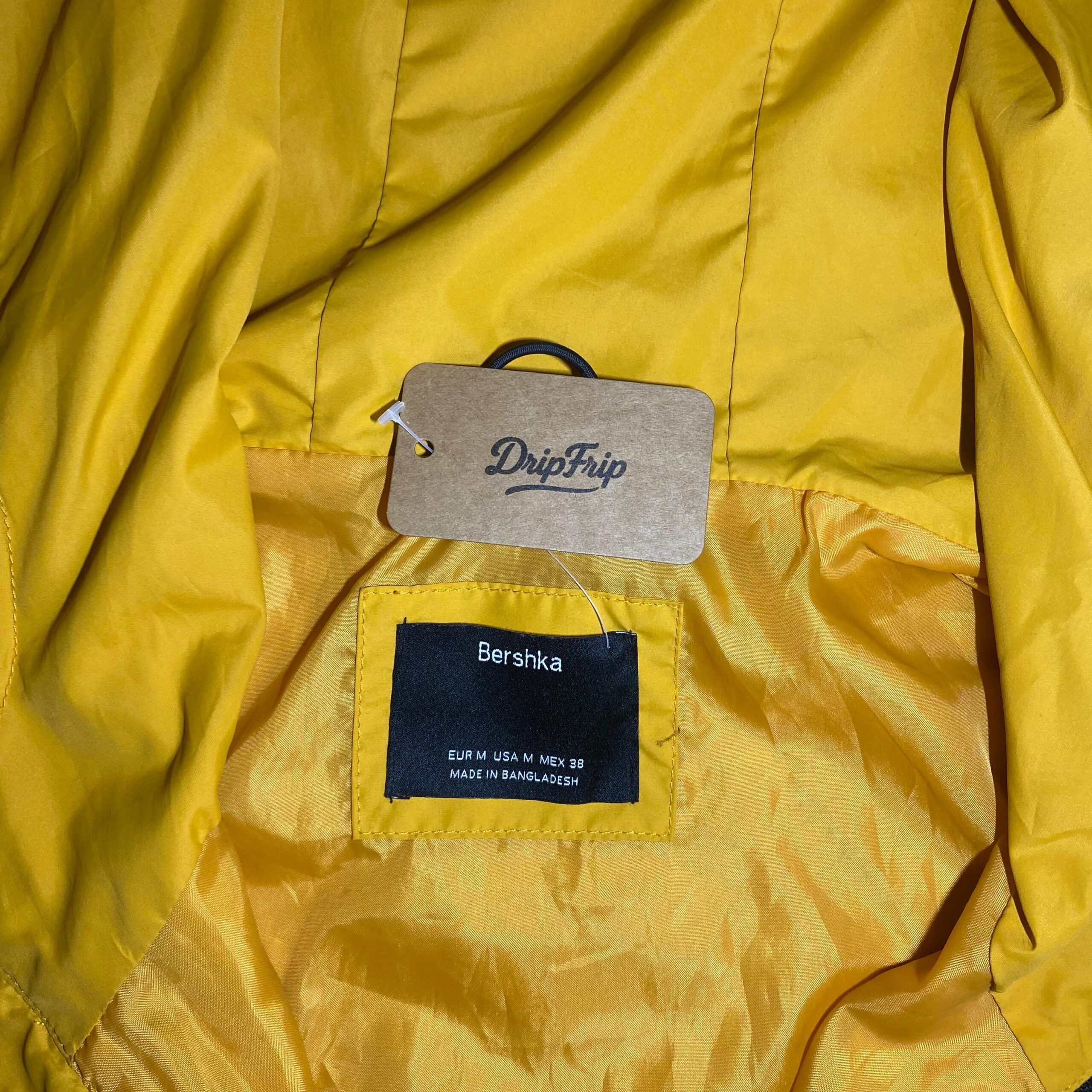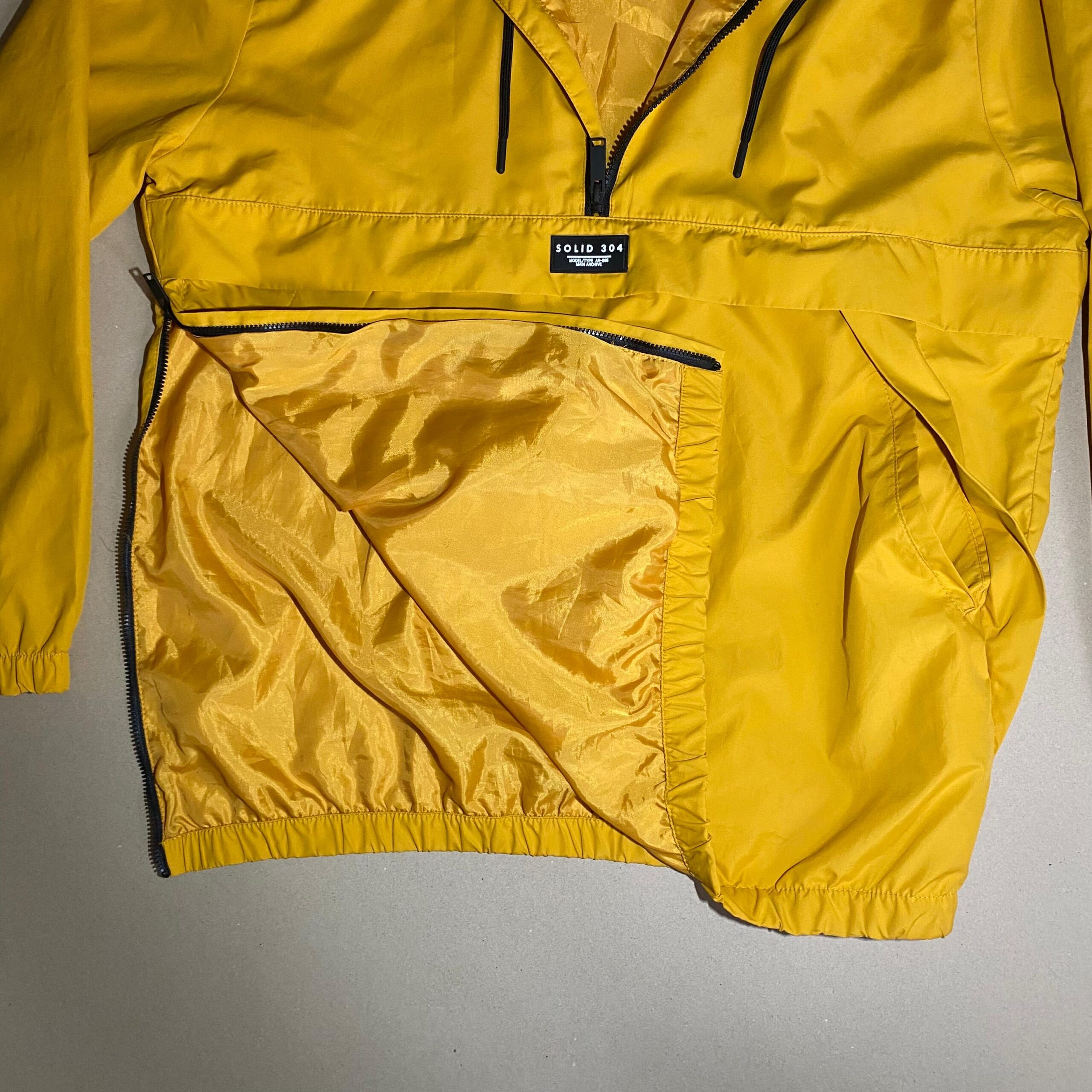 K-way Anorak Bershka « Solid 304 », coloris jaune moutarde, doté d’une fermeture demi-zip noire et d’une grande poche ventrale zippée ultra pratique.