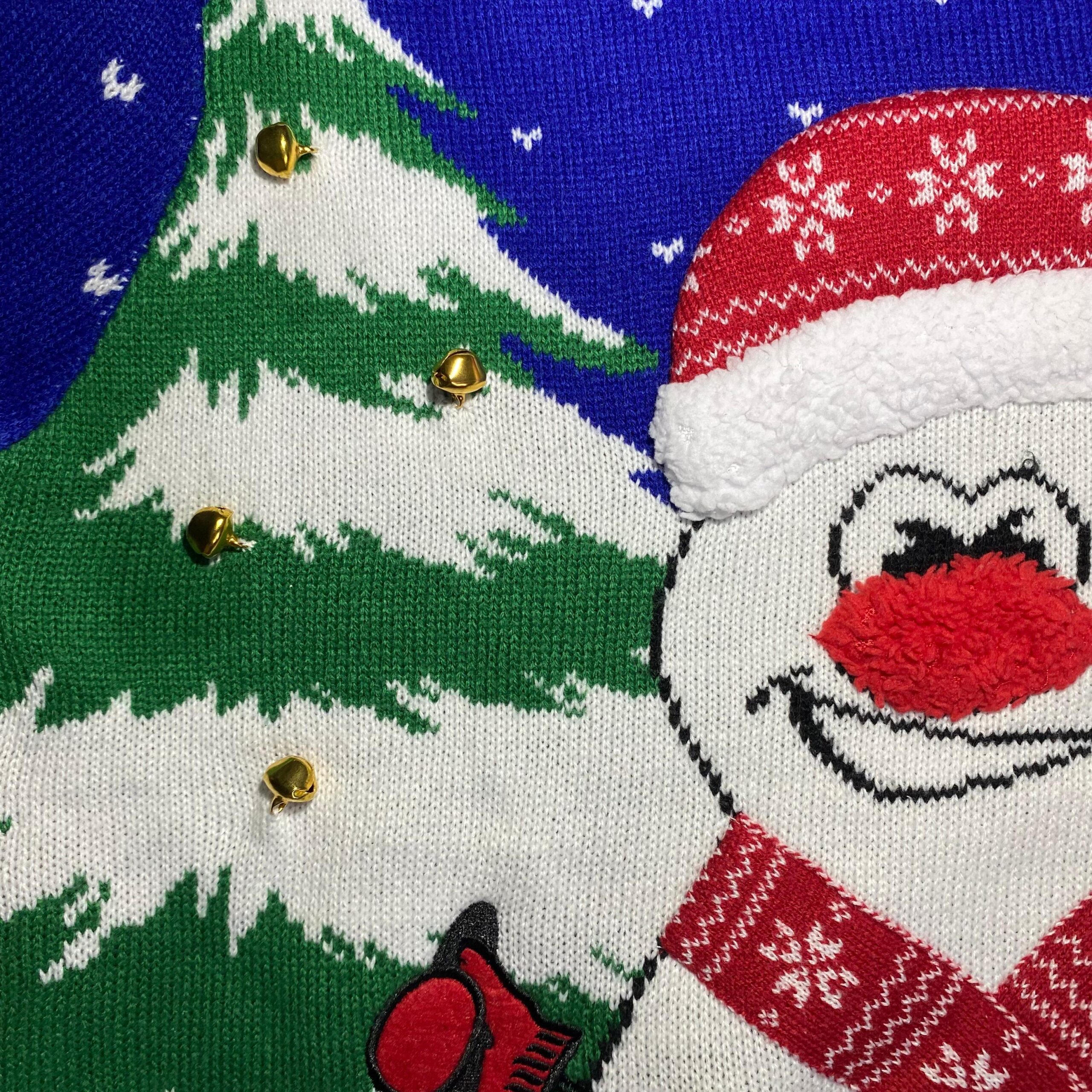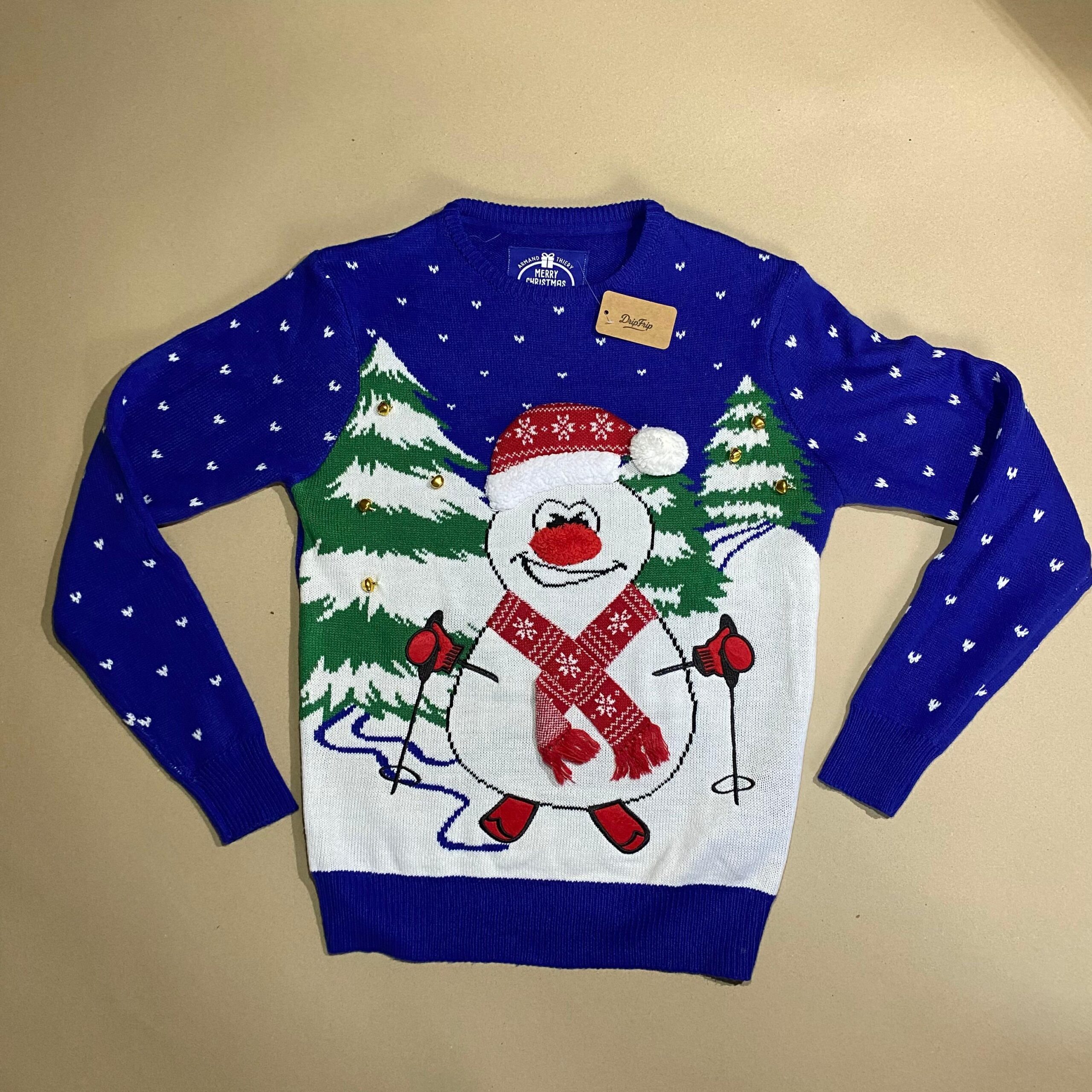 Pull de Noël Bonhomme de Neige au ski & Sapins – Taille M