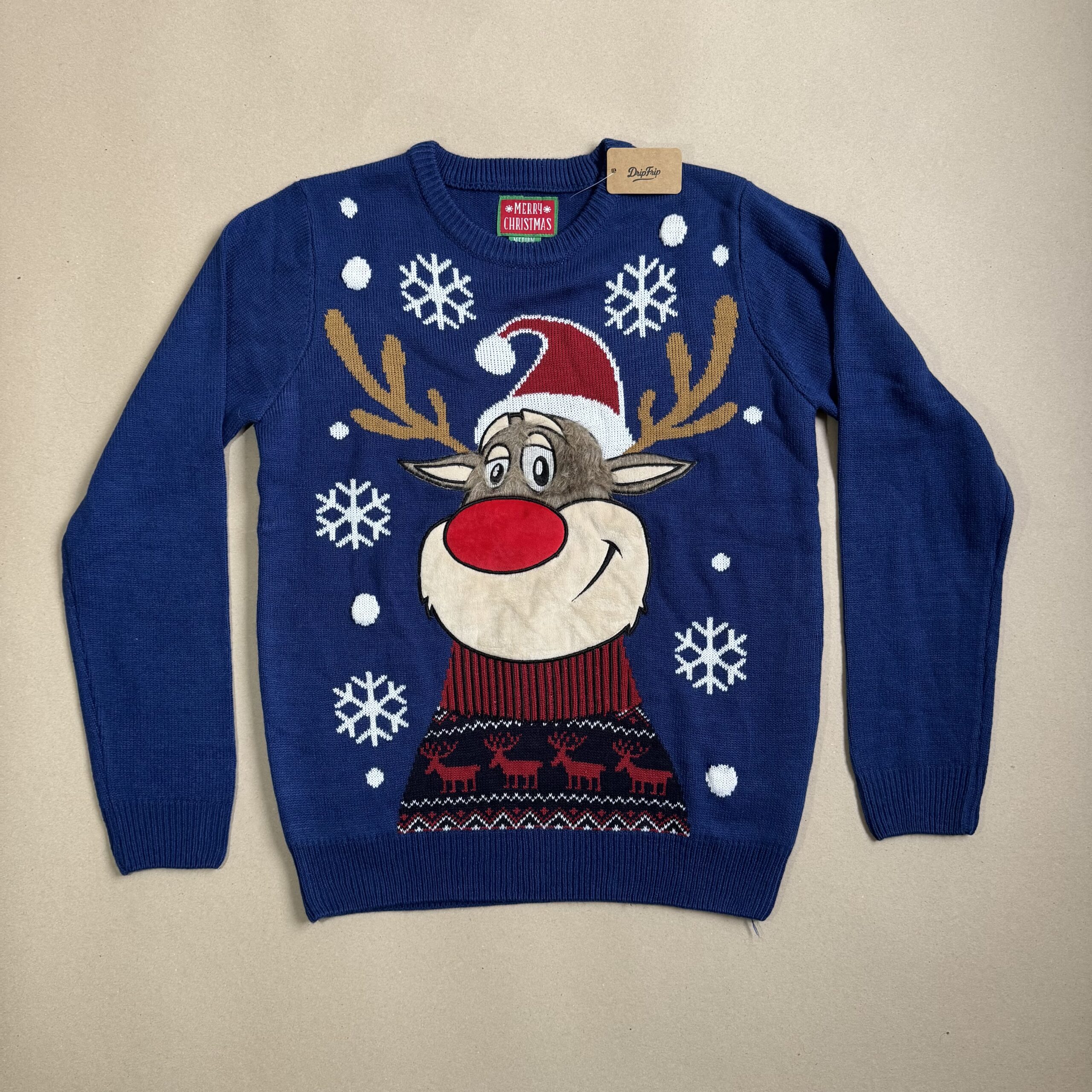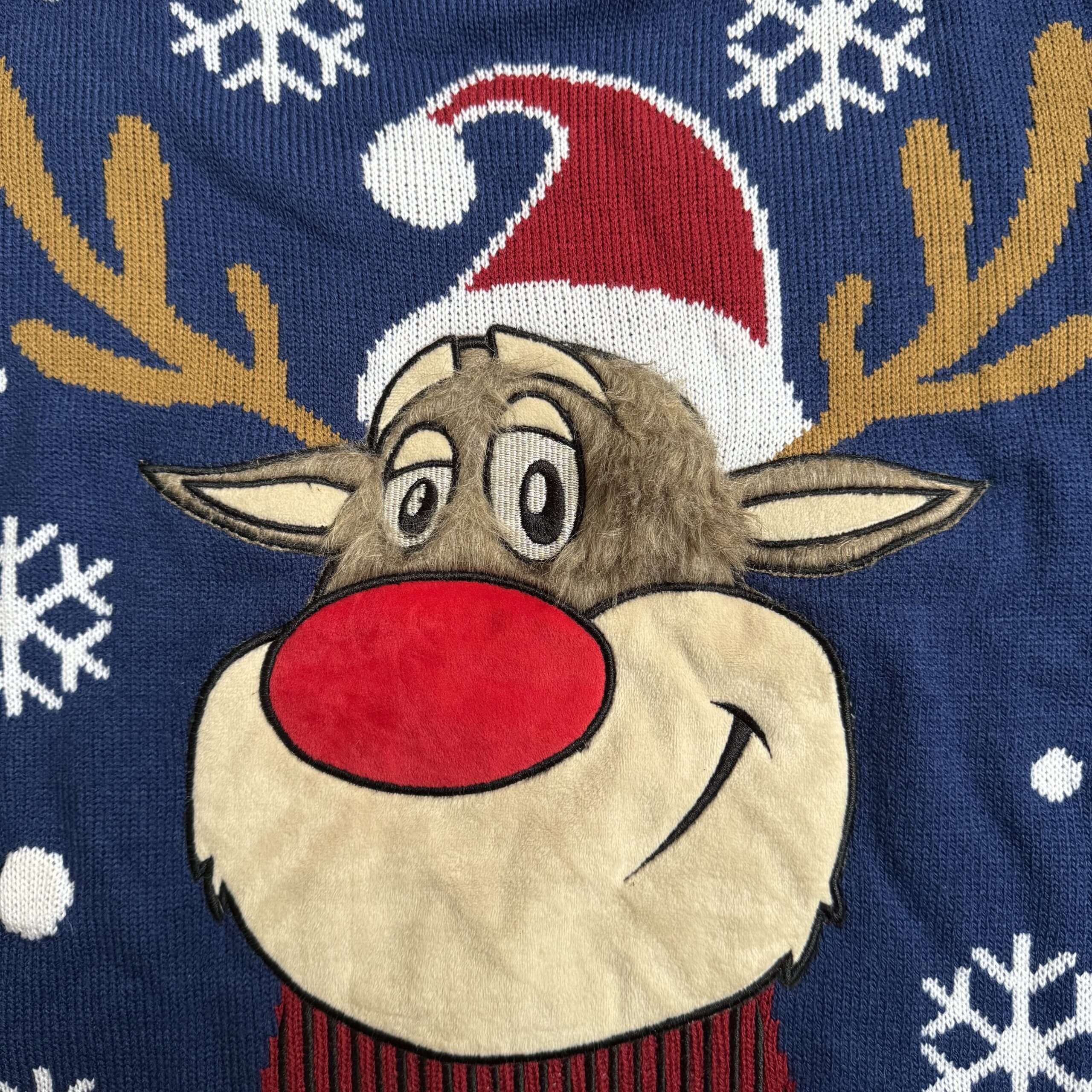 Pull de Noël Renne & Flocons avec renne en relief, détails peluche et motifs flocons. Style fun et texturé, parfait pour un look hivernal original.