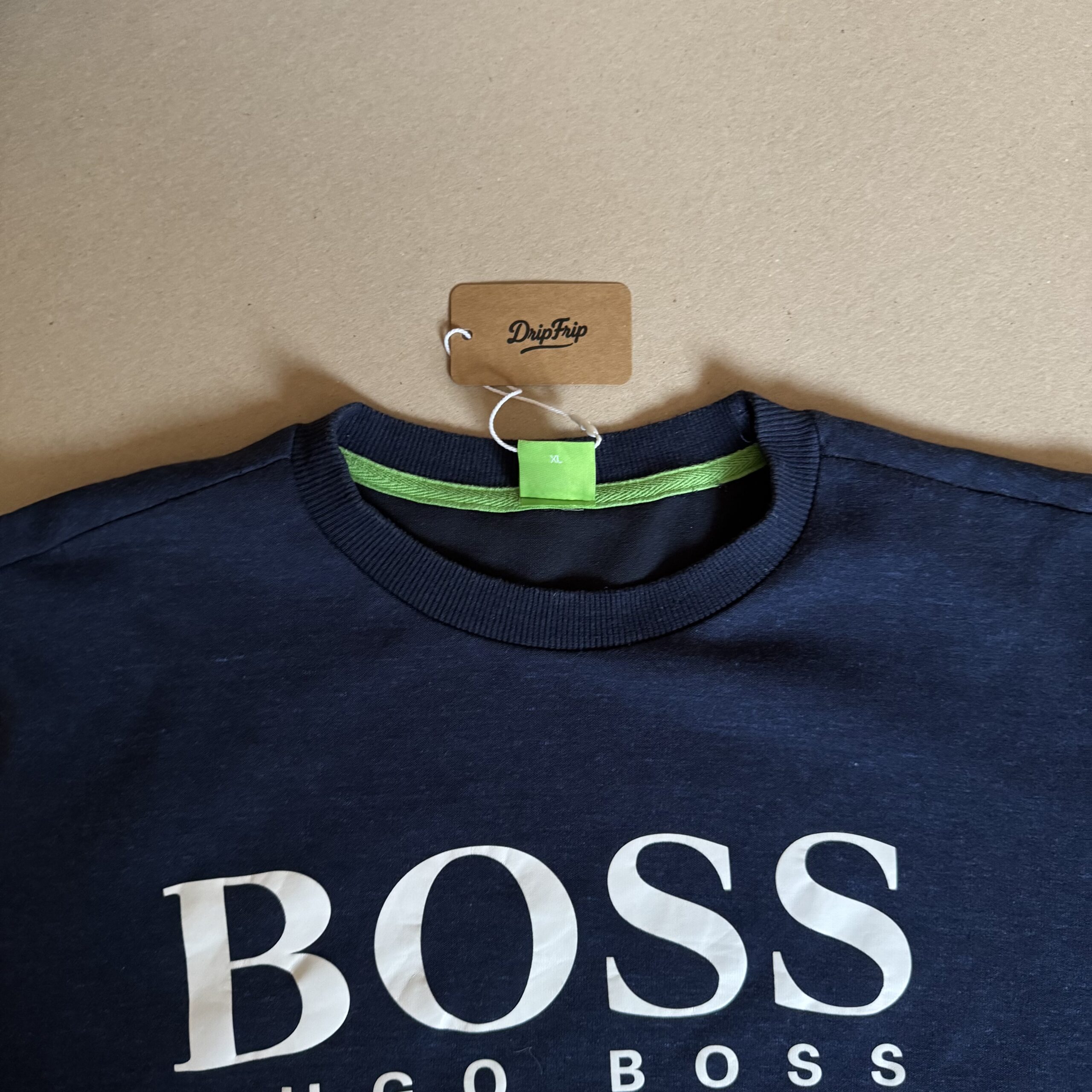 Le logo BOSS HUGO BOSS PARIS est imprimé en blanc sur la poitrine, contrastant avec le fond sombre pour un rendu net et élégant.